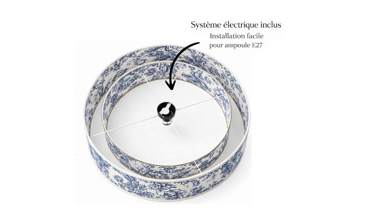 Plafonnier Abat-Jour Double | Toile de Jouy Bleu