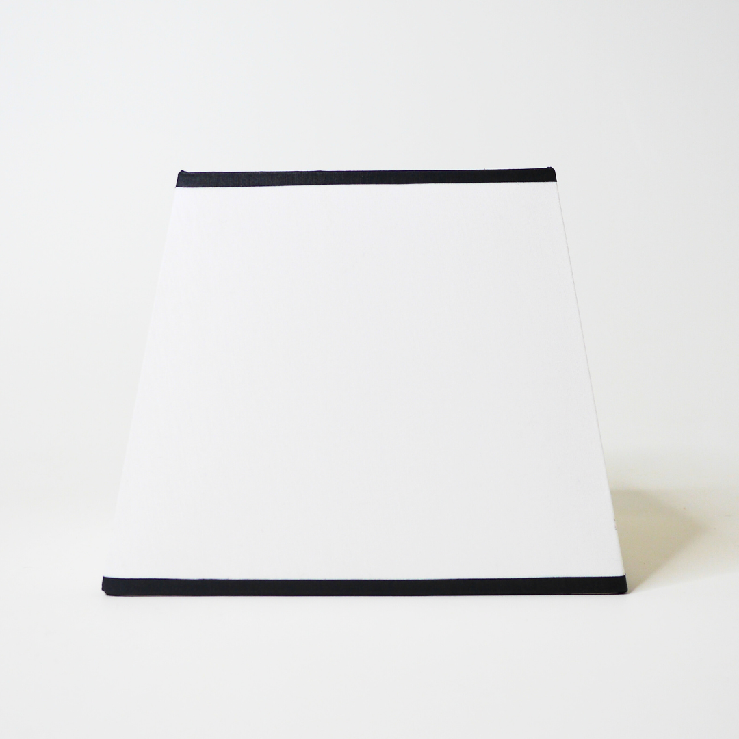 Cet abat-jour pyramide est confectionné en chintz 100% coton blanc écru de qualité supérieure. Son design géométrique est souligné par une finition liseré noir qui lui apporte une allure graphique et structurée. Fabriqué artisanalement en France, il dispose d'une armature métallique robuste et d'un intérieur en polyphane blanc pour garantir une diffusion de lumière optimale et chaleureuse.