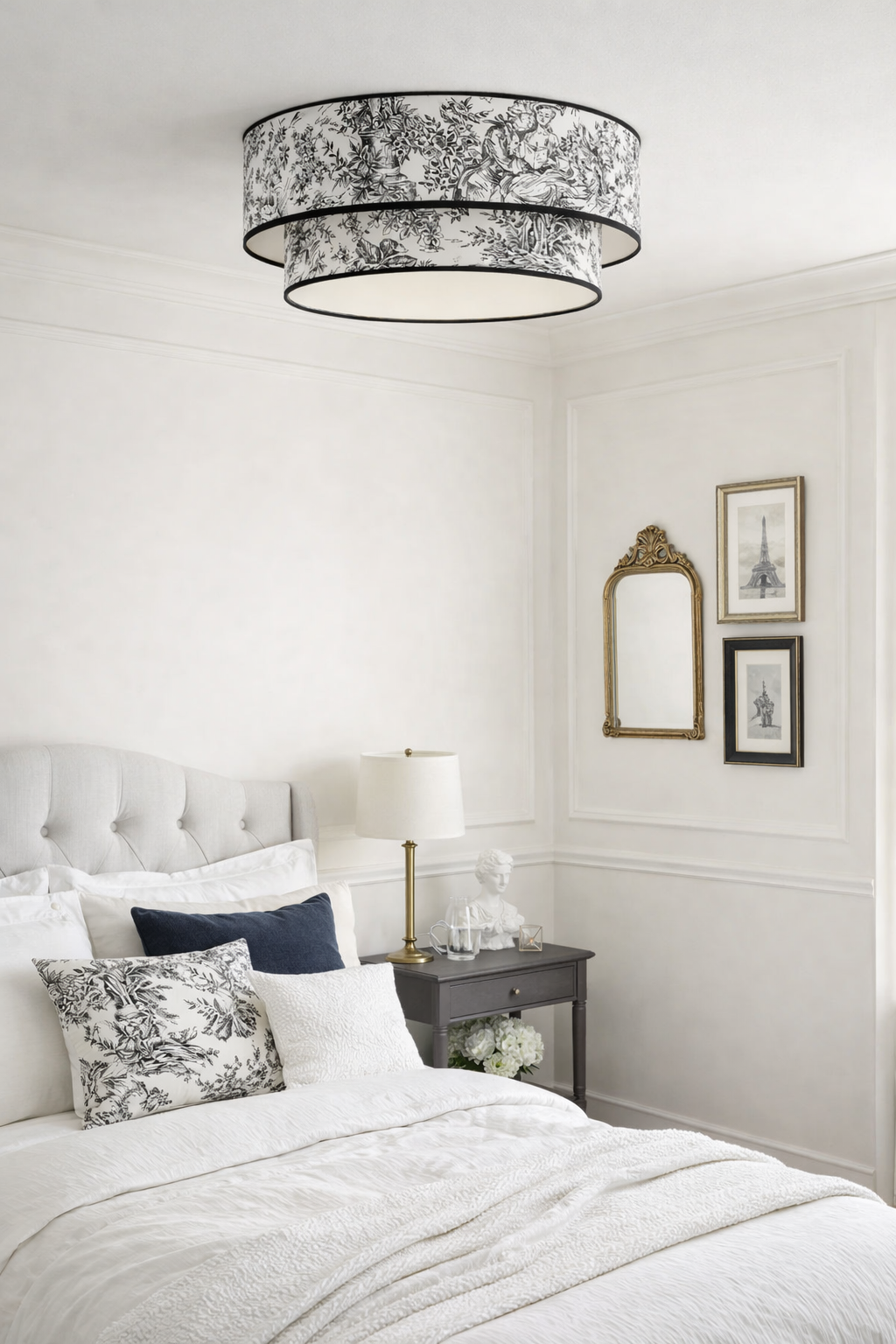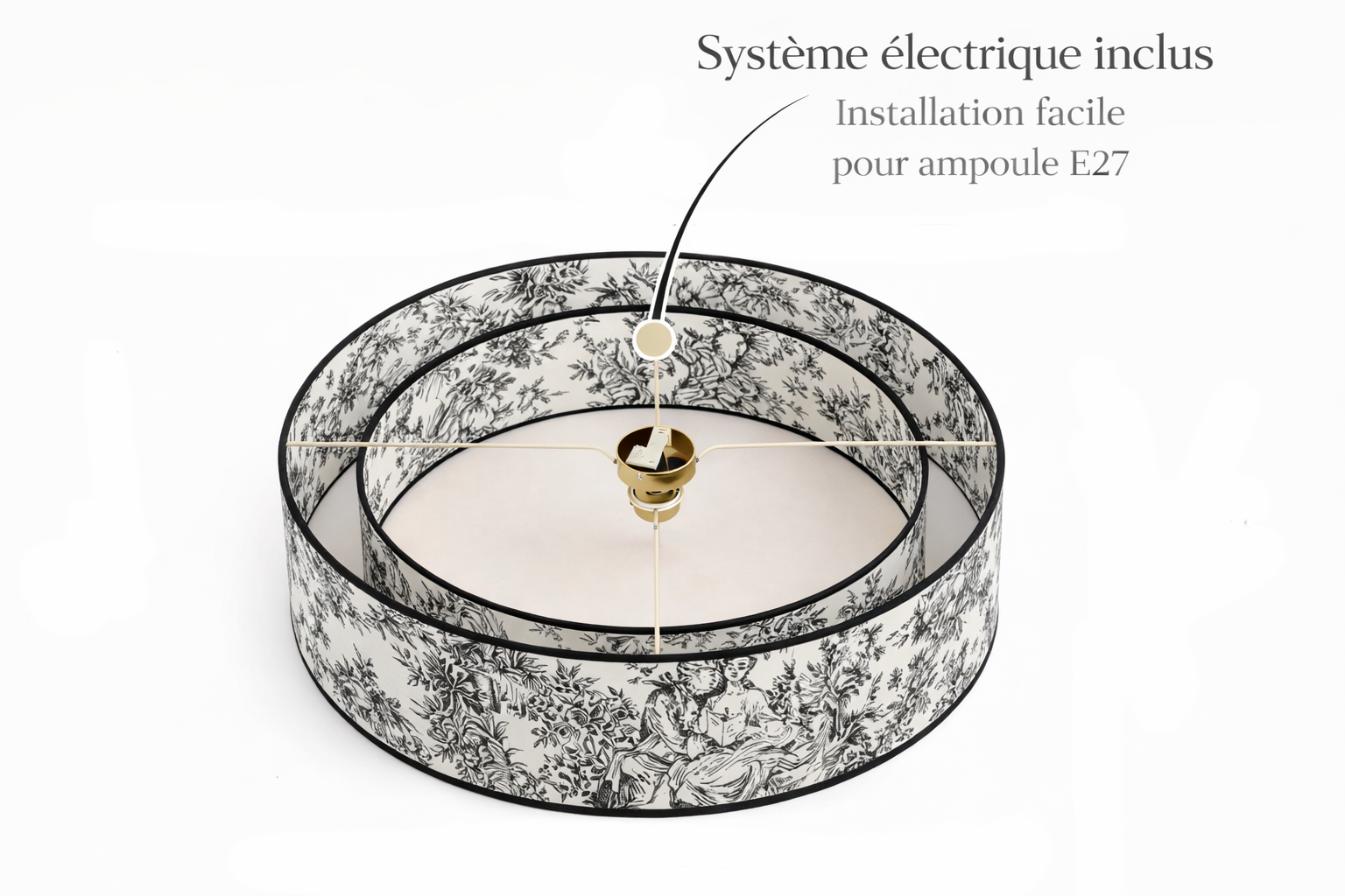 Plafonnier Abat-Jour Double | Toile de Jouy Noir