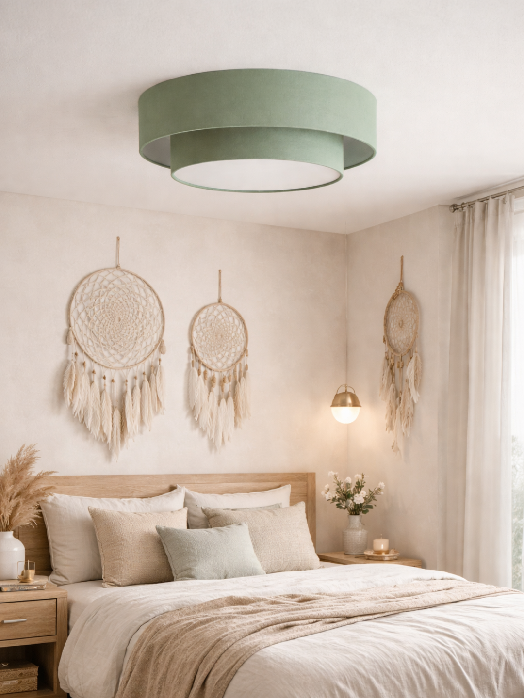 Le vert sauge est une teinte végétale apaisante, idéale pour instaurer une atmosphère relaxante dans une chambre d'adulte, un salon ou une entrée. Ce plafonnier s'associe parfaitement avec :