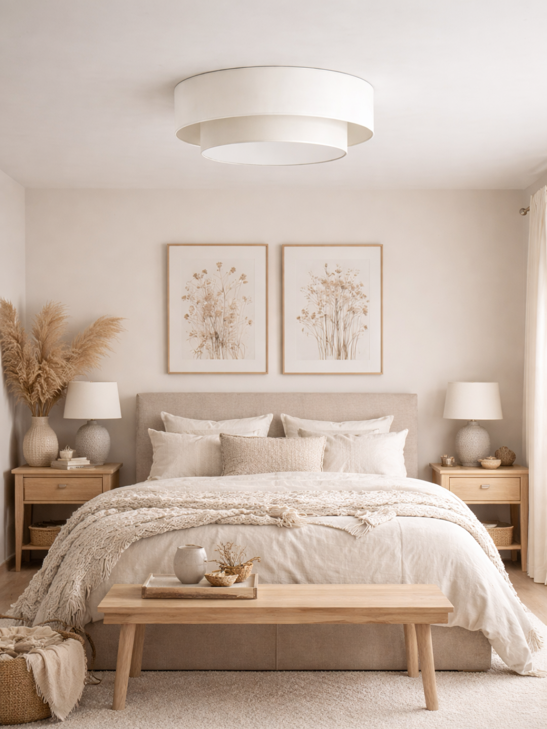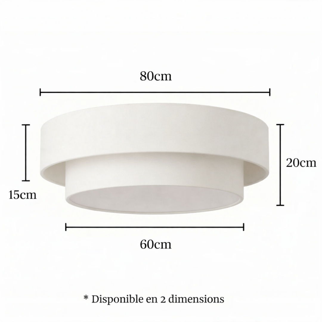 Le blanc cassé est une teinte douce, lumineuse et intemporelle qui traverse les styles sans jamais se démoder. Ce plafonnier double abat-jour trouve parfaitement sa place dans un salon, une chambre, une entrée ou une salle à manger, en apportant une note chic et apaisante à votre décoration.